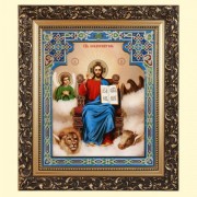 Русская Православная Икона двойного тиснения "золотыми" и "серебряными" красками в деревянной узорчатой раме. Приблизительные размеры рамы: Ширина 6,0 см,  толщина 3,5 см.