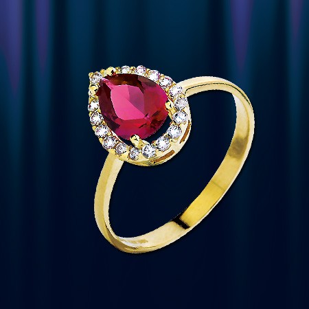 Изделие по заказу фирмы AUDITOR Это кольцо выполнено из жёлтого  золота 585° и украшено синтетическим рубином (8 х 6) мм, цирконами. Золотое кольцо с рубином символизирует власть и могущество. Рубин в золотом кольце подчеркивает достижение его обладателем определенного положения в обществе, кроме этого он символизирует страстную и пылкую любовь.