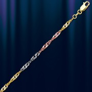 жёлтого золота 585 пробы. Данные цвета цепочки, чередуя друг друга и сверкая на свету алмазной огранкой, создают неповторимый шарм данного украшения.