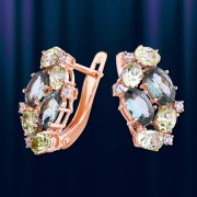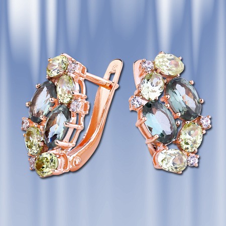 топаз, ( 6 х 4 и 4 х 3 ) мм и сверкающим цирконом.