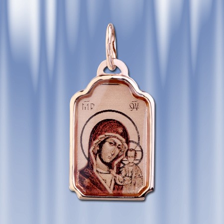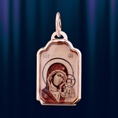 русского золота 585°. На основании подвески гравировано изображение Божией Матери с Младенцем Иисусом. Высота с ушком пр.30 мм. Ширина: 15 мм.