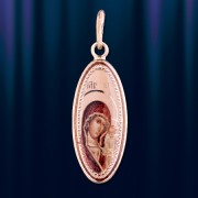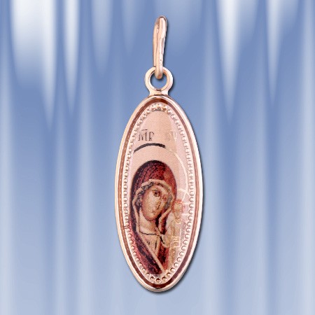 русского золота 585°. На основании подвески гравировано изображение Божией Матери с Младенцем Иисусом. Высота с ушком пр.30 мм. Ширина: 10 мм.