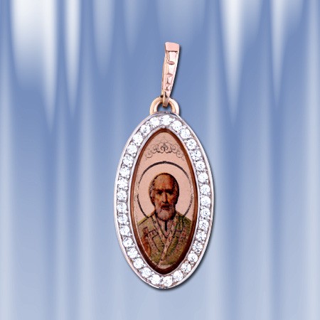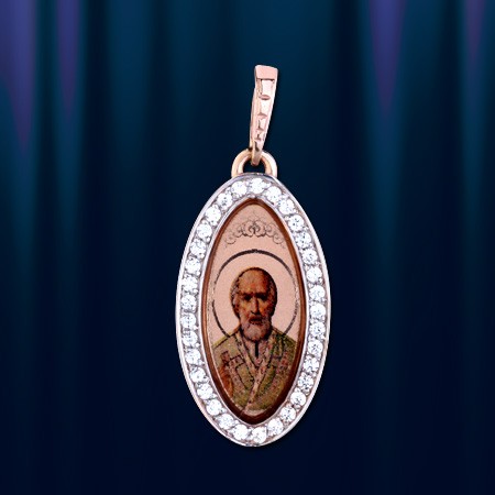 фианит. На основании подвески гравировано изображение святителя, на обратной стороне гравированная надпись:"Святителю отче Николаю, моли Бога о нас". Высота с ушком пр.30мм. Ширина: 15 мм.