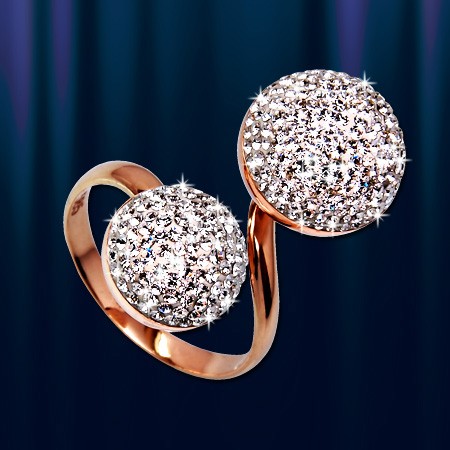 Кольцо выполнено из красного  русского золота 585 пробы,  украшено бесцветными цирконами, являющимися идеальной имитацией бриллианта. Кольцо прекрасно подчеркнет нежность, очарование и естественность Вашей красоты.