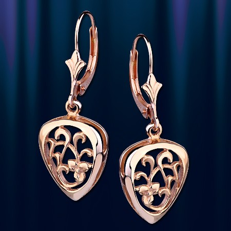 Серьги-подвески "Витраж" из красного русского золота 585°. Длина пр. 30 мм. Замковая часть серег проста, надежна и долговечна.