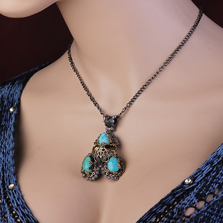 Стильное и роскошное украшение ручной работы - кулон с тремя большими вставками иранской