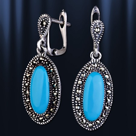 Ohrringe aus Silber 925 mit Türkis., Markasit. Länge ca. 30 mm. Breite ca. 12 mm
