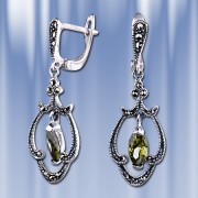 Серьги выполнены из чернённого серебра 925 пробы,  украшены цирконом (10 х 5)  и марказитом.