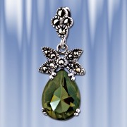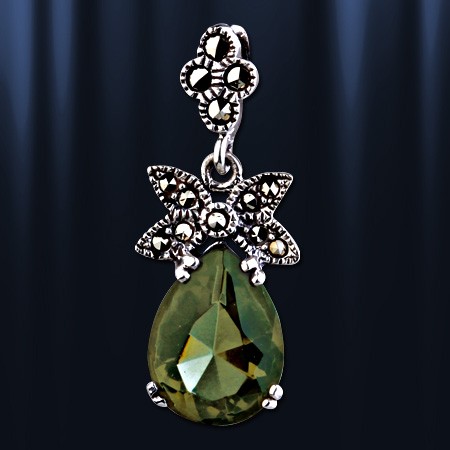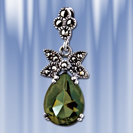 Подвеска из чернёного серебра 925 пробы с красивой вставкой циркона ( 13 х 10 ) и россыпью марказита. Длина с ушком пр.30 мм. ширина пр.12 мм.