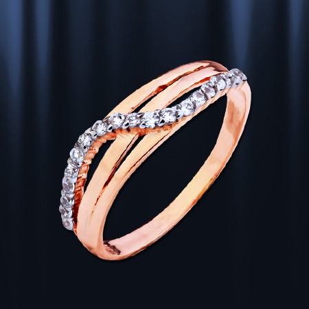 Кольцо выполнено из красного русского золота 585 пробы, украшено бесцветными цирконами Ø1 мм., являющимися идеальной имитацией бриллианта. Высота пр 6 мм. Кольцо прекрасно подчеркнет нежность, очарование и естественность Вашей красоты.