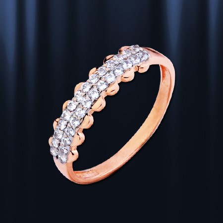 Кольцо выполнено из красного русского золота 585 пробы, украшено бесцветными цирконами Ø1 мм, являющимися идеальной имитацией бриллианта. Кольцо прекрасно подчеркнет нежность, очарование и естественность Вашей красоты. Ширина кольца пр.5 мм.