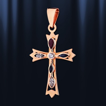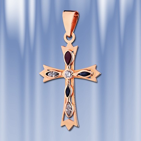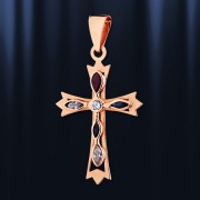 Золотой крестик из красного золота украшенный фианитами. Золото 585 пробы. Высота с ушком пр.34 мм. ширина 21 мм.