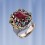 Эксклюзивное кольцо ручной работы из чернёного серебра 925 пробы украшенное рубином (12 х 10 мм), который красиво обрамляют 8 изумрудов (диаметр 2 мм) и 6 рубинов (диаметр 2 мм).  Позолоченное. Кольцо, в котором чувствуется дух роскоши и элегантности, аристократизма и величия. Высота кольца пр. 23 мм.