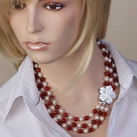 Kette aus Perlen Ø 7 mm und Ahate Ø 7 mm, Länge ca.49 cm