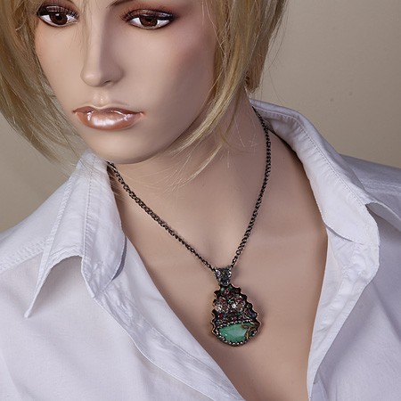 Стильное и роскошное украшение ручной работы - подвеска с большой вставкой иранской зелёной