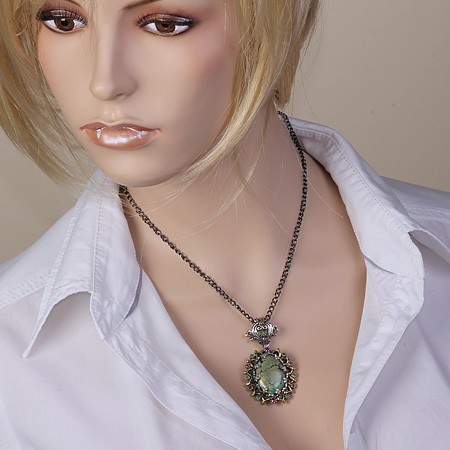 Стильное и роскошное украшение ручной работы - подвеска с большой вставкой иранской зелёной
