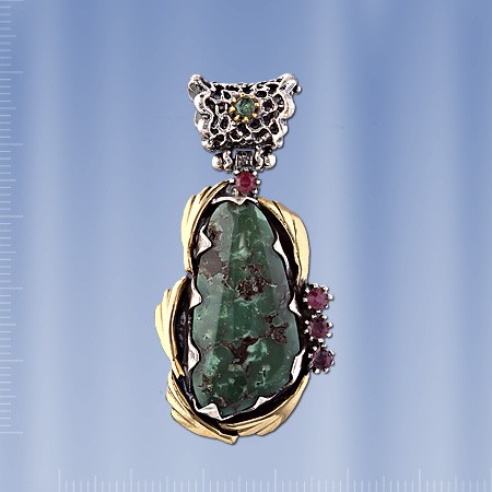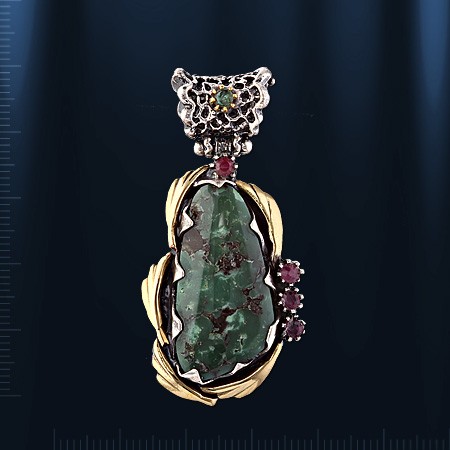 бирюзы (30 х 15 мм), которую красиво обрамляют 4 рубина Ø 3 мм и