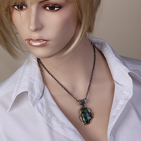Стильное и роскошное украшение ручной работы - подвеска с большой вставкой иранской зелёной