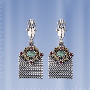 Ohrringe aus dem geschwärztem Silber 925° mit 2 Smaragden (5 x 7 mm), 8 Rubinen Ø 2 mm. Hohe ca.43 mm. Breite ca.18 mm. Ohrringe mit englischen Lock - einfach, zuverlässig und langlebig.