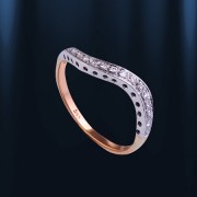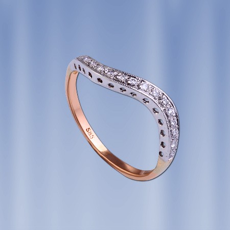 Кольцо выполнено из красного и белого русского золота 585 пробы с 17-ю бриллиантами 0,14 карата H S1. Высота кольца пр.2 мм.