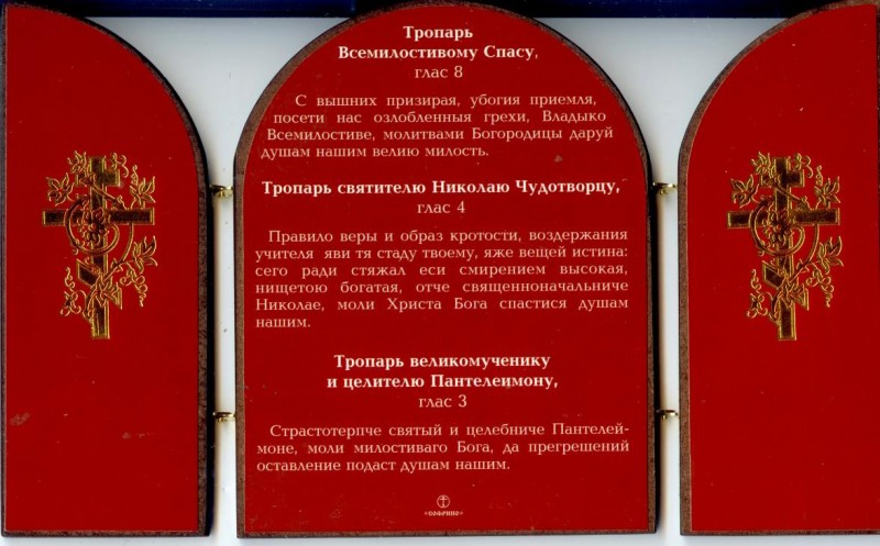 На оборотной стороне складня размещены краткие молитвы Спасу и Святым.