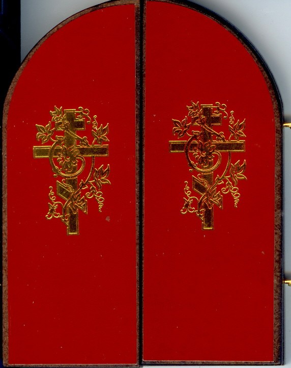 Очень красивая и сильная икона- складень, тисненная золотом. Длинна раскртытой иконы - прибл. 200,0 мм, высота 120,0 мм, толщина 5,0 мм.