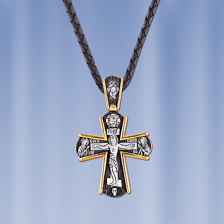 Kreuzanhänger aus Silber 925° vergoldet 999°. Länge mit Öse ca.40 mm., Breite ca.25 mm.