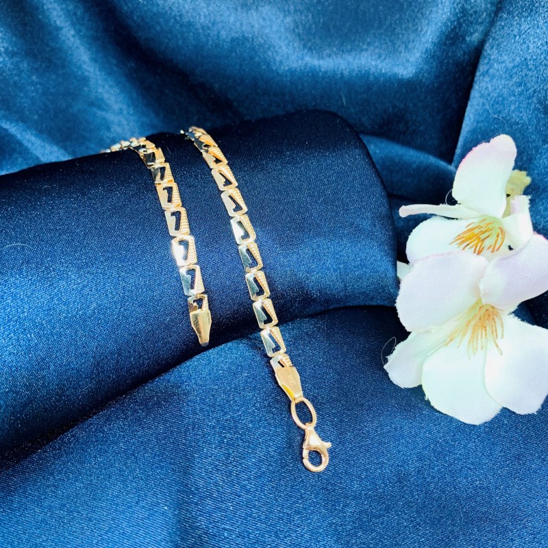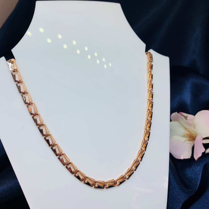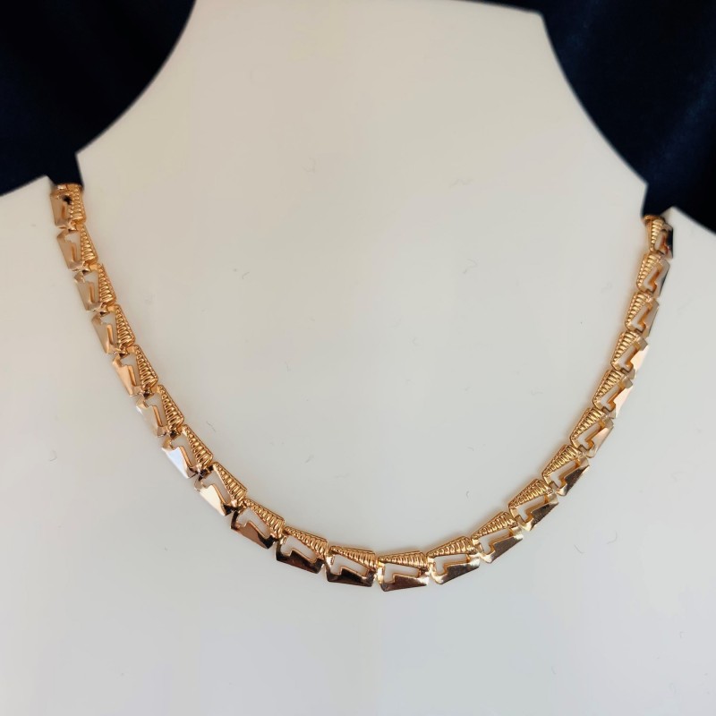 Eine zarte Kette aus 14 Karat rotem und weißem russischem Gold, die mit moderner langlebiger Lamellentechnologie hergestellt wird, die es ermöglicht, bei gleichzeitiger Volumenanmutung ein relativ geringes Gewicht und damit vergleichbar niedrige Kosten zu erzielen.