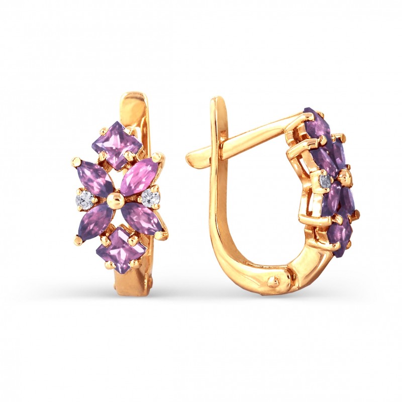Ohrringe aus Rot/Weißgold 585° verziert mit 4 Amethysten (3 x 3 mm) 8 Amethysten (4 x 2 mm) und 4 Fianiten ¢ 1,5 mm. Diese schillernden Ohrringe werden Sie mit Schönheit und Eleganz begeistern. Höhe ca.12 mm., Breite ca. 8 mm.