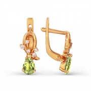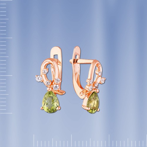Rotgold 585° verziert mit Chrysolith (6 x 4 mm) und 6 Fianiten ¢ 1,25 mm., 4 Fianiten ¢ 1,5 mm Diese schillernden Ohrringe werden Sie mit Schönheit und Eleganz begeistern. Höhe ca.15 mm., Breite ca.5 mm.