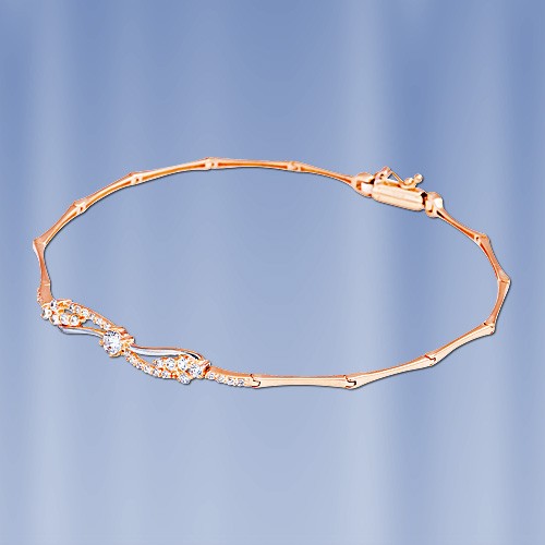 Симпатичный браслет выполнен из классического красного золота 585-й пробы с цирконом ¢1 mm, ¢2 mm,¢3 mm. Длина 20 см.
