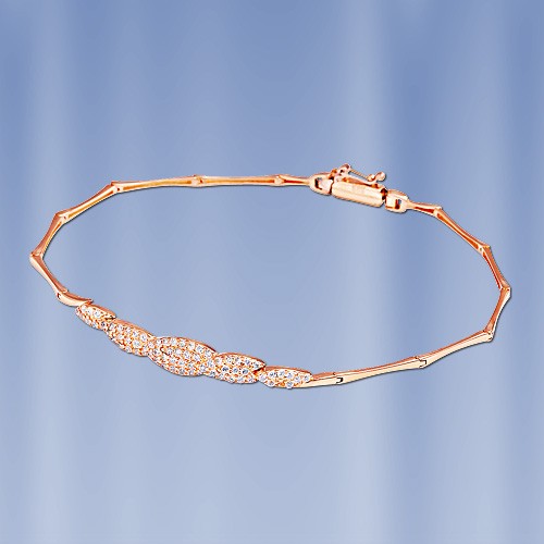 Симпатичный браслет выполнен из классического красного золота 585-й пробы с цирконом ¢1 mm. Длина 19 см.