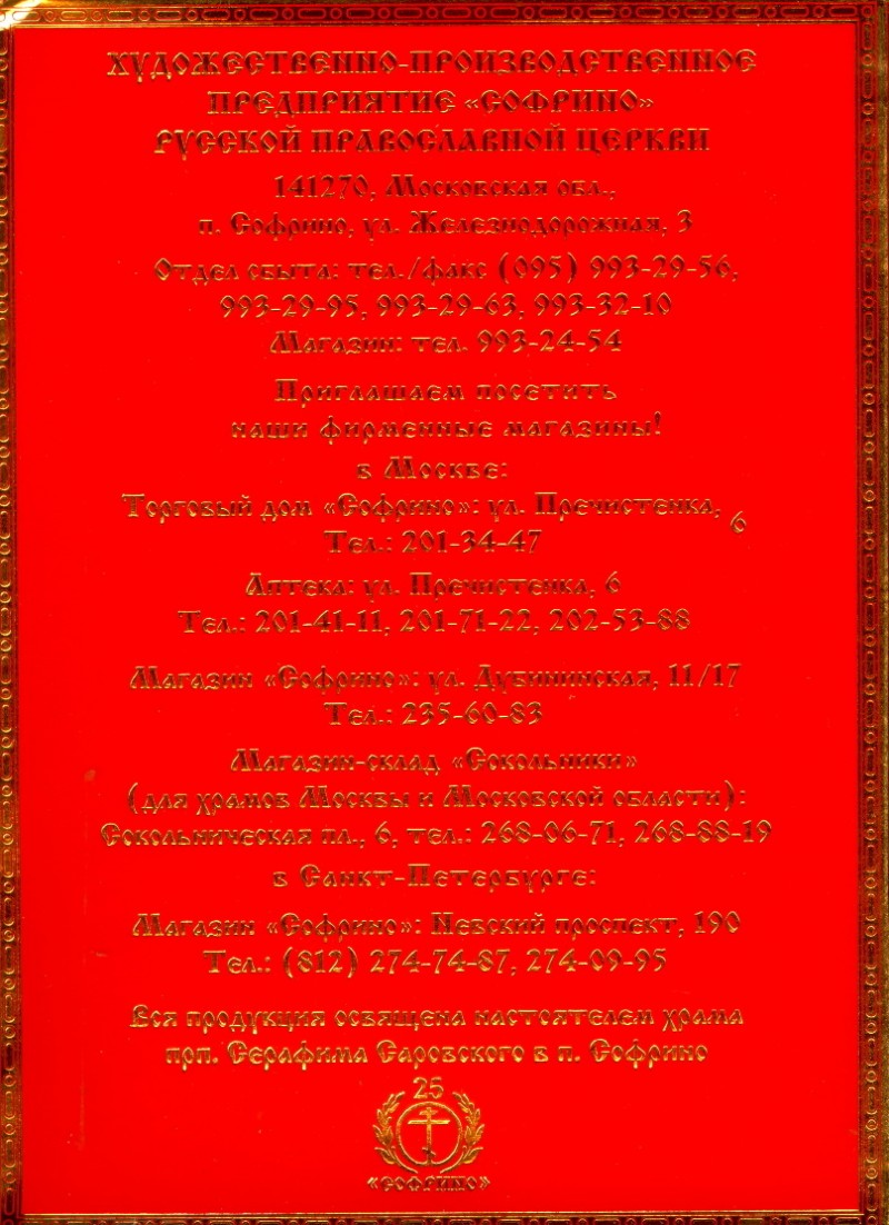 Икона вложена в подарочную упаковку, тисненную "золотом".