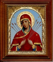 Auf der Ikone Gottesmutter Semistrelnaja ist Preswjataja die Gottesmutter dargestellt, die von sieben Pfeilen durchbohrt ist: vier von der linken Seite und drei von der Rechten. Sie ist auf die Wörter der Prophezeiung Heiligen gerechten Simeona, die im Jerusalemer Tempel in den vierzigsten Tag nach Roschdestwe Christowom gesagt sind geschrieben: «Se, liegt Dieser auf das Fallen und auf den Aufstand viele in Israel und in den Gegenstand des Wortwechsels, und Dir werden die Waffen die Seele» gehen.