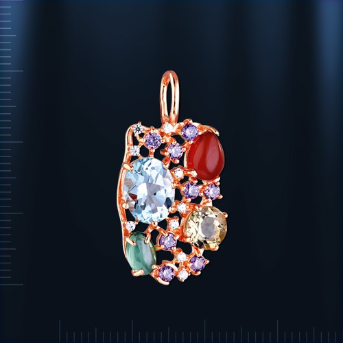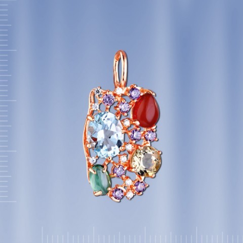 Цитрин, Агат, Фианиты. Длина с ушком пр. 30 мм., ширина пр.15 мм.