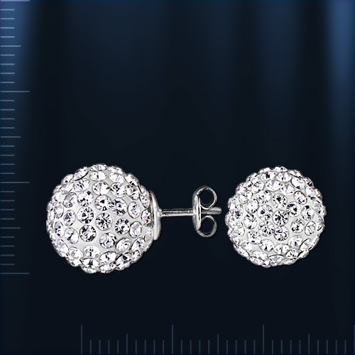 Серьги - пусеты  в форме шара  украшены сверкающим  цирконом ¢ 1 мм.