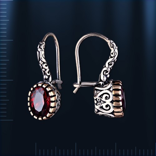 Ohrringe aus geschwärztem Silber 925°  mit Rubinen ( 8 x 6  mm) und Bronze geschmückt. Länge ca.20 cm.