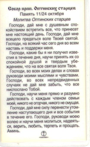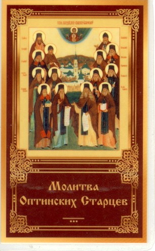 Икона Оптинские Старцы  с Молитвой,  5,4 х 8,5 см, ламинированная.