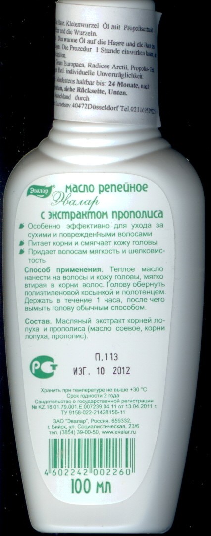 Масло рейное с экстратом прополиса. Устраняет ломкость сухих и поврежденных волос. Питает корни и смягчает кожу головы. Придает волосам мягкость и шелковистость. Пластиковая упаковка 100 мл.