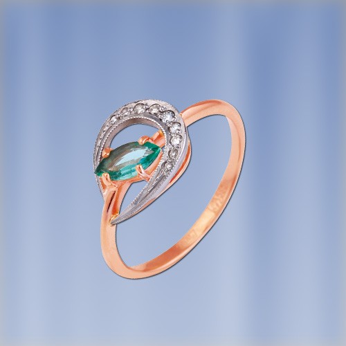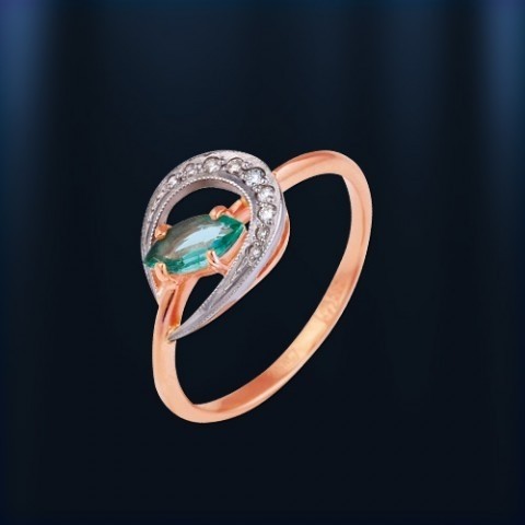 Goldring mit Diamanten und Smaragd. Russisches Gold in Deutschland. Der Ring besteht aus 14-karätigem russischen