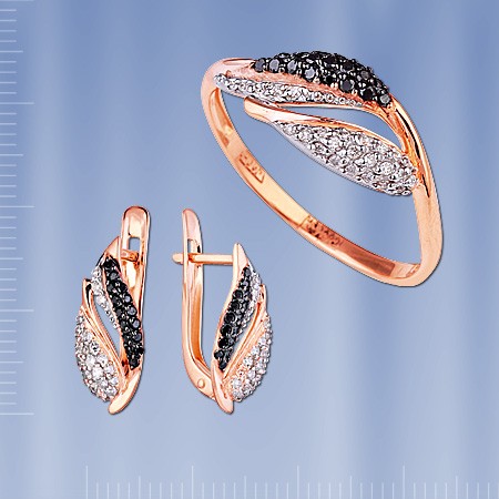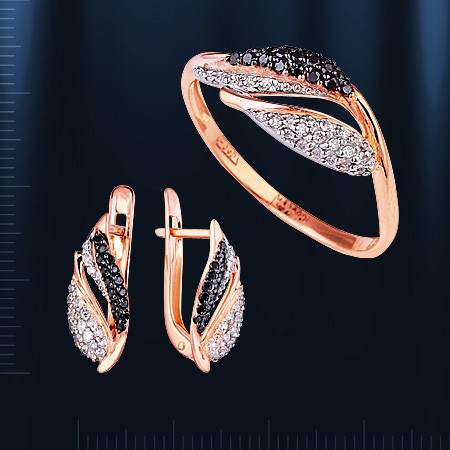 русского золота 585°. Вставки: 25 бриллианов 0,068 Ct., 18 бриллиантов 0,106 Ct.(обработанный чёрный) Высота кольца пр.7 мм. Кольцо покорит Вас своей красотой и блеском, поможет Вам почувствовать себя неотразимо.