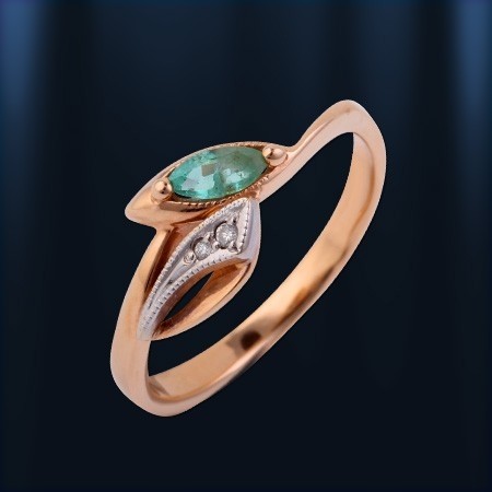 Goldring mit Diamanten und Smaragd. Russisches Gold in Deutschland. Der Ring besteht aus 14-karätigem russischen