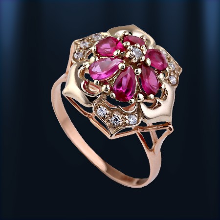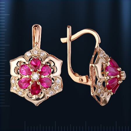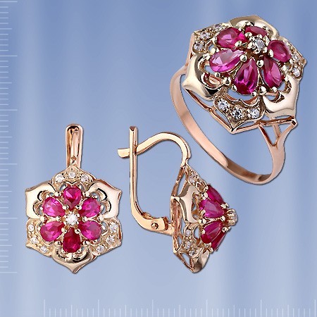 Гарнитур из русского красного и белого золота 585 пробы с цирконом. Кольцо: 6 цирконов ( 3 х 5 мм) и 10 цирконов ¢ 1 мм. Высота кольца пр.17 мм. Серьги : 12 цирконов (3 х 5 мм), 10 цирконов ¢ 1 мм. Высота пр.25 мм., ширина пр.17 мм. Серьги с английским замком - простым, надежным и долговечным.