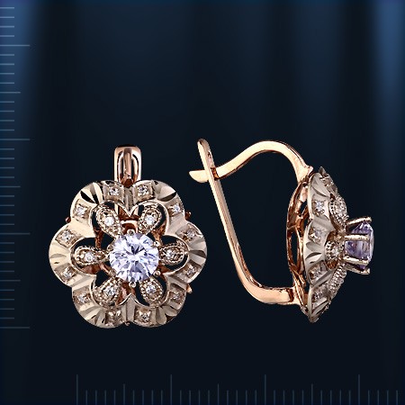 Верхняя декоративная часть серег с алмазной гранью выполнена из