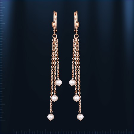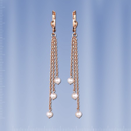 Серьги - подвески на цепочках из русского красного золота 585° с  жемчугом ¢ 4 мм.  Длина пр.68 мм.