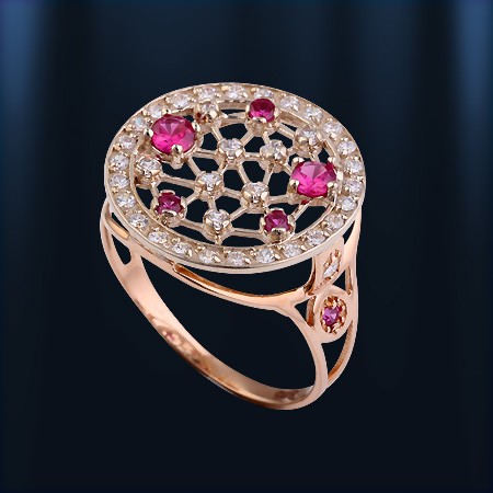 Золотое кольцо & Серьги - подвески. Рубин