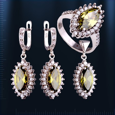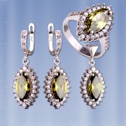 Серебряный гарнитур с цирконом состоит из кольца, подвески и серёг.