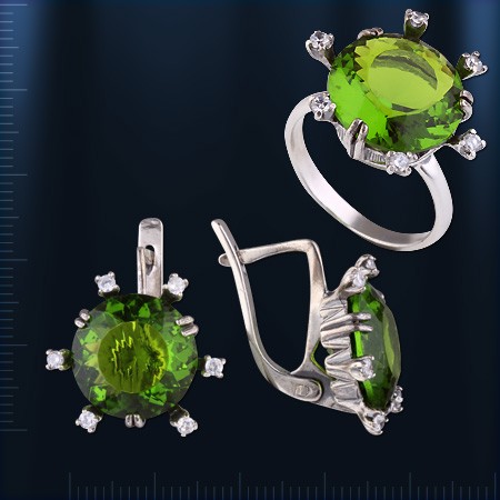 Set aus Silber 925° besteht aus Ohrringer mit  Zirkonia (¢ 14 mm), Zirkonia ¢ 2 mm und Ring mit Zirkonia (¢ 14 mm), Zirkonia ¢ 2 mm. Höhe Ohrringer ca.20 mm., Breite ca.20 mm., Ringhöhe ca.20 mm