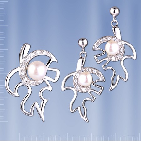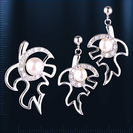 Серебряный гарнитур с жемчугом состоит из подвески и серёг.