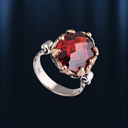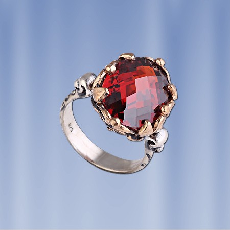 Эксклюзивное кольцо ручной работы из чернёного серебра 925 пробы украшенное синтетическим гранатом (11 х 16 мм). Бронза. Кольцо, в котором чувствуется дух роскоши и элегантности, аристократизма и величия. Высота  кольца пр.20 мм.